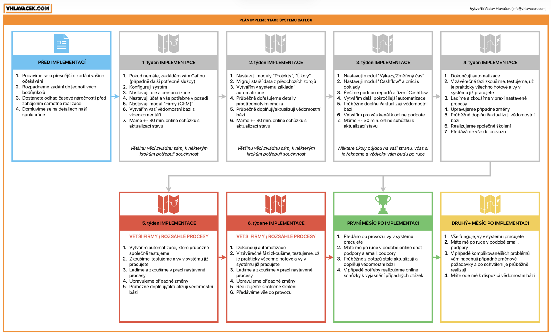 - Analyzuji a vymýšlím procesy ve vaší firmě a navrhuji řešení procesů v Caflou.