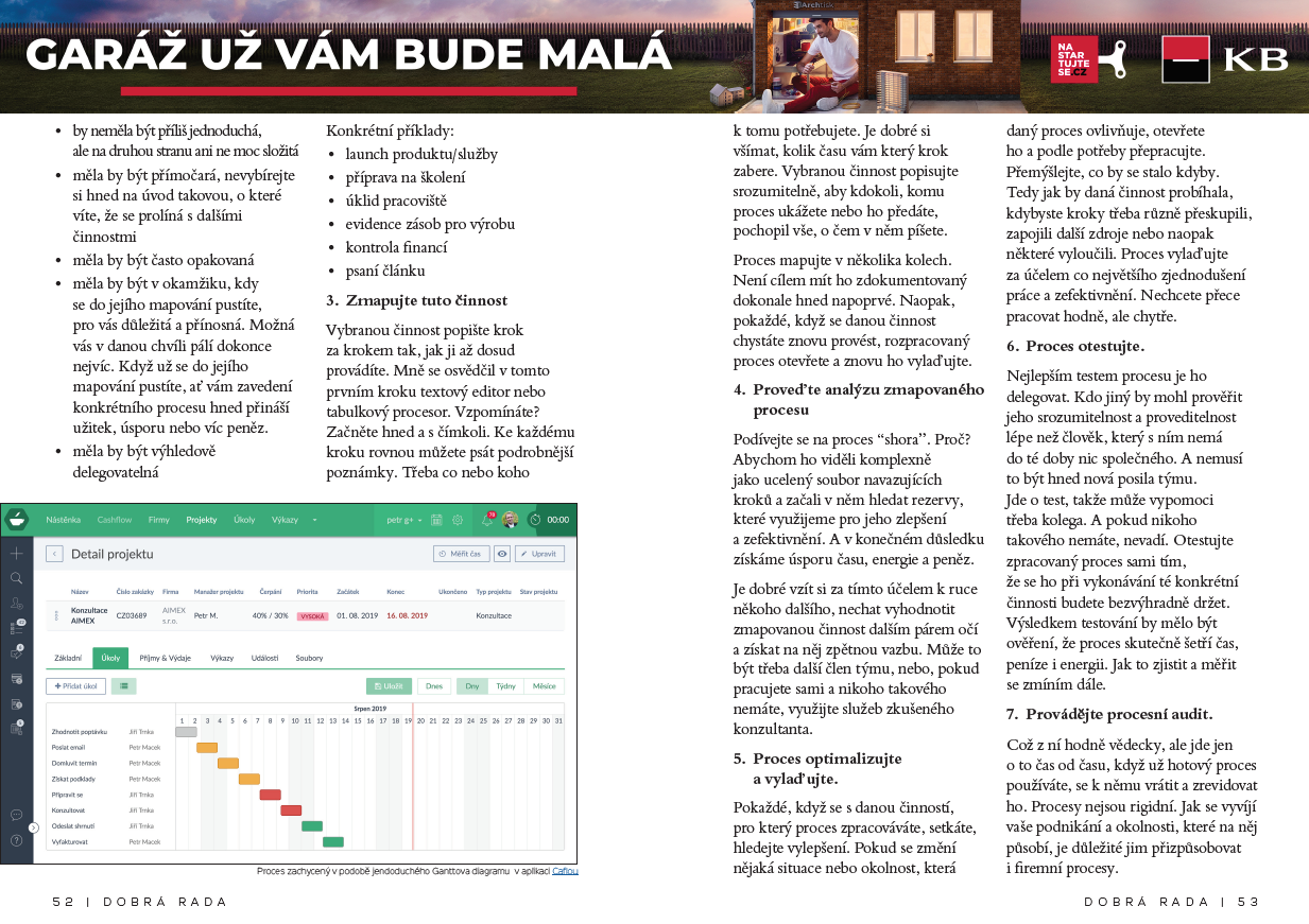 Až se zase budete pouštět do nového projektu nebo úkolu, vzpomeňte si, abyste ho náležitě zdokumentovali se vším všudy, co se v jeho průběhu bude dít. A získáte tak první nástřel postupu, který je začátkem na cestě k lepší efektivitě práce. Udělejte jednoduše ve svém podnikání z chaosu pořádek. Držím vám palce.