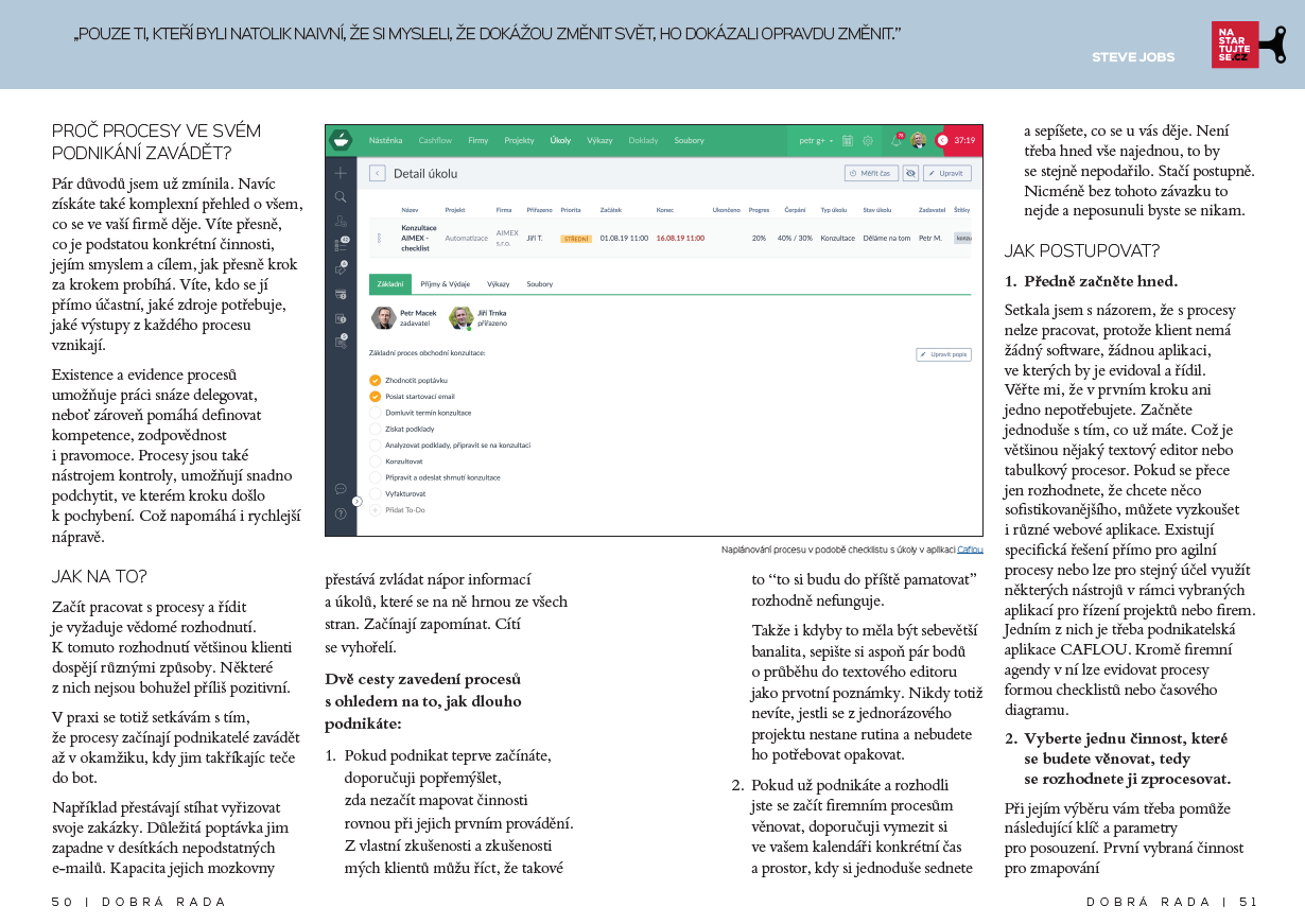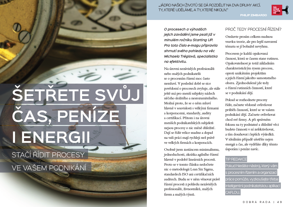 Stačí řídit procesy va vašem podnikání! Ve spolupráci s www.iPodnikatel.cz a jejich e-magazínem STARTINGUP jsme připravili další článek na téma procesy / kontrola podnikání.