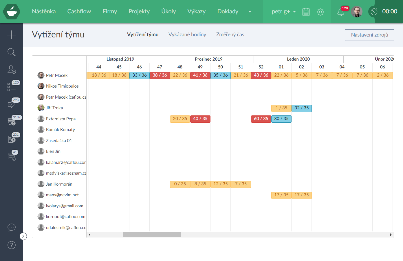 💡Tip: Caflou má například na tohle šikovnou funkci sledování, kdo má jakou nálož práce naplánovanou a nakolik je vytížen.