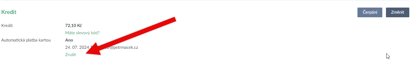 Zrušit automatickou platbu můžete kdykoliv z Nastavení účtu, sekce Kredit: