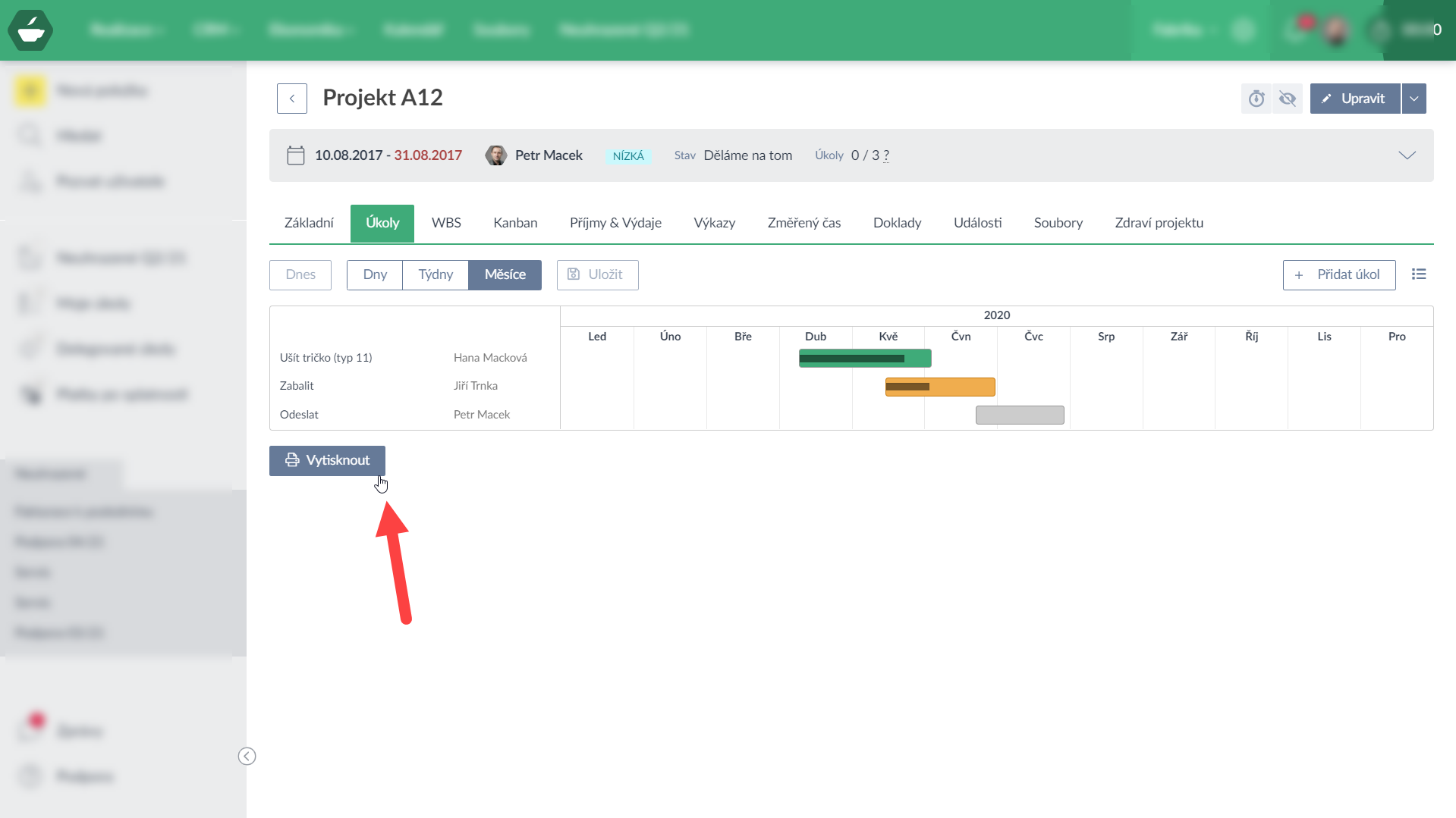 Ganttům diagram nyní můžete tisknout nebo exportovat do PDF (přes funkci tisku):