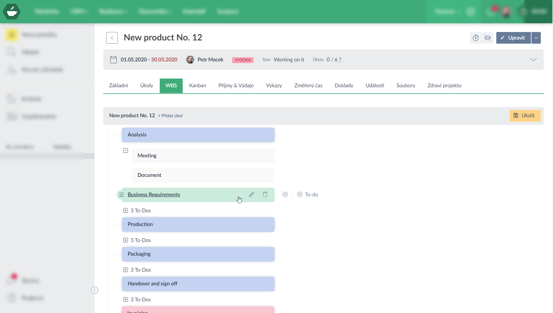 WBS (work breakdown structure) má za sebou první designové úpravy: