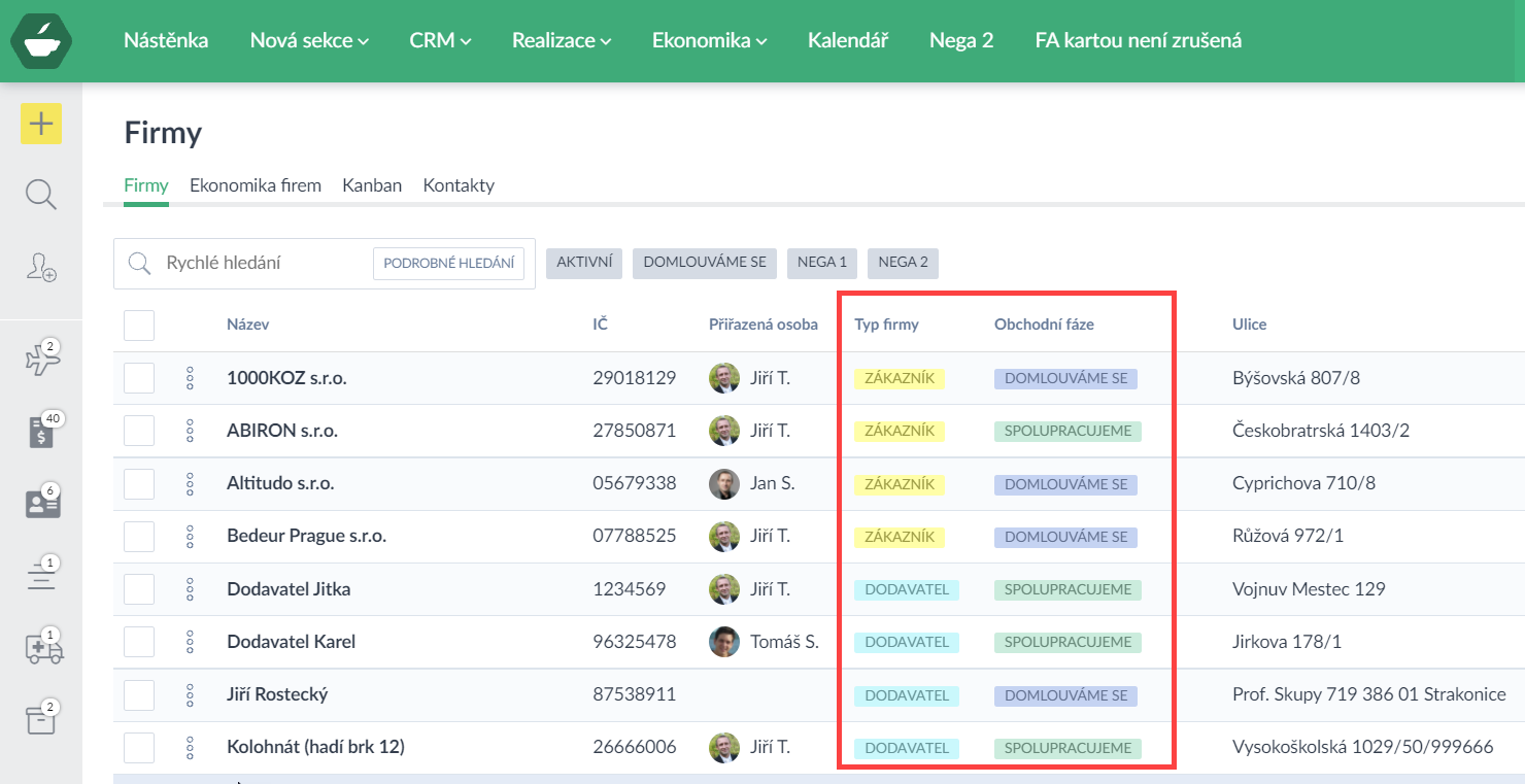 U většiny stavů, typů, kategorií, sazeb atd. si nyní můžete zvolit barvy. Daný typ, stav, kategorie apod. pak v přehledech uvidíte "obarvené" právě dle zvolené barvy: