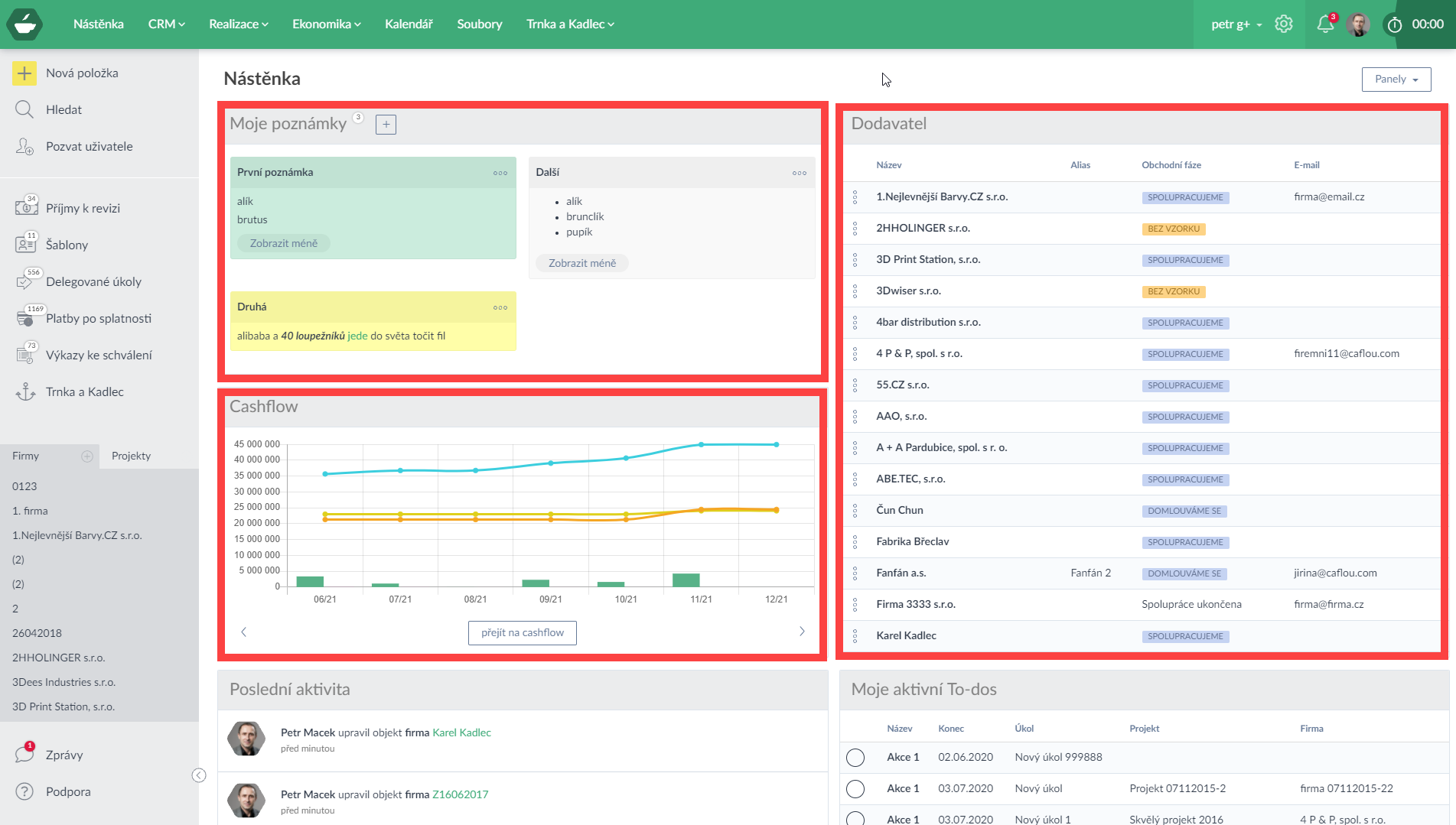 1. V rámci Personalizace (v nastavení modulů na Nástěnce) si nyní můžete zvolit, zda má mít modul dvojnásobnou výšku. Pouze modul Cashflow nelze zvýšit.