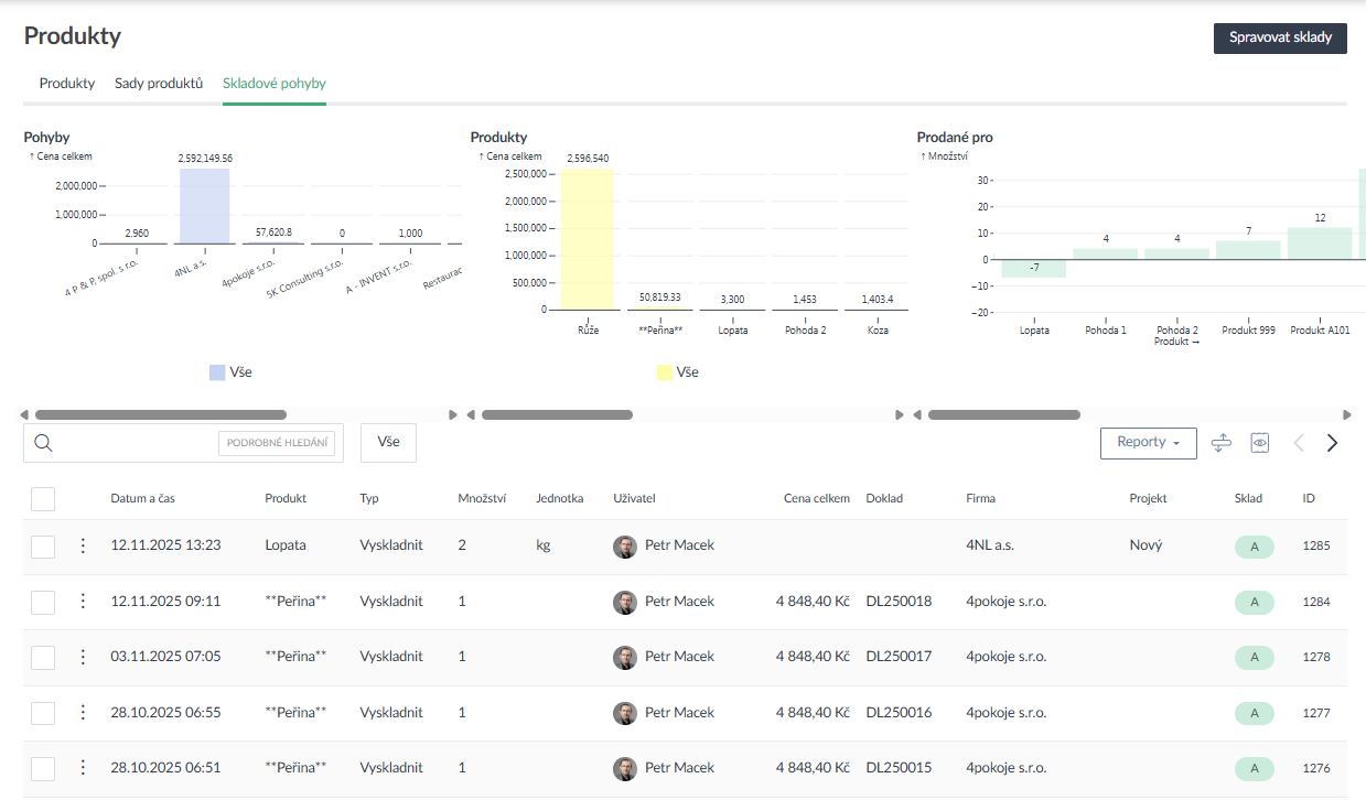 V případě, že by bylo u jednoho druhu přehledu (např. u skladových pohybů, výkazů, změřených časů...) zaškrtnuto pole "Zobrazit v přehledu" u více než tří reportů, tak se zobrazí vždy maximálně jen tři.