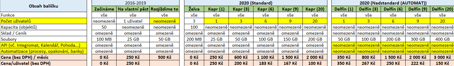 - Pro majitele malých účtů (Na vlastní pěst) je toto příležitost získat neomezený velký balíček (Rozjíždíme to) za stávajích podmínek (= neomezeně uživatelů za fixní cenu).
