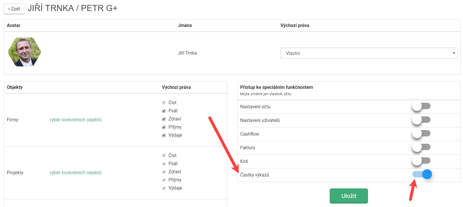 Potřebujete, aby vaši zaměstnanci vykazovali čas na projektech, ale zároveň chcete, aby sazby a částky výkazů zůstaly skryté? Nyní můžete u každého uživatele zvolit, zda má sazby výkazů a částky výkazů vidět. Stačí překlinout u konkrétního uživatele volbu "Částky výkazů" ve Správě uživatelů: