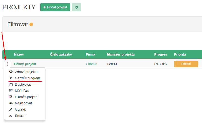 Nejsnáze se ke Ganttu dostanete z přehledu projektů: