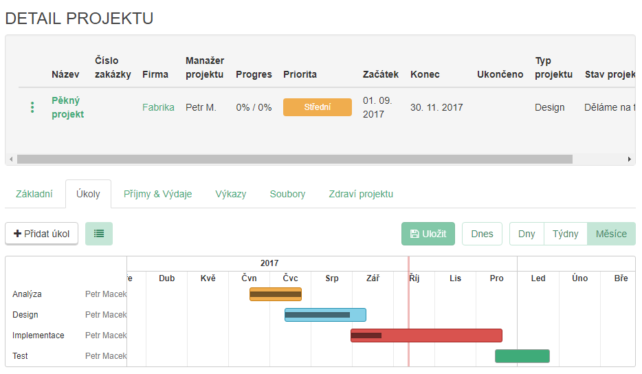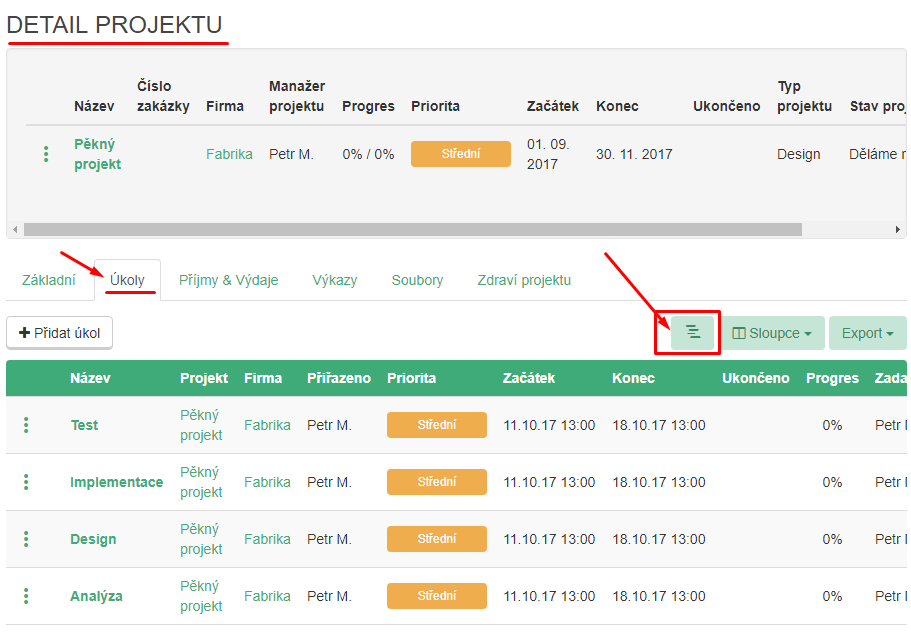 a nebo z detailu projektu, přes záložku "Úkoly" a ikonu Ganttova diagramu: