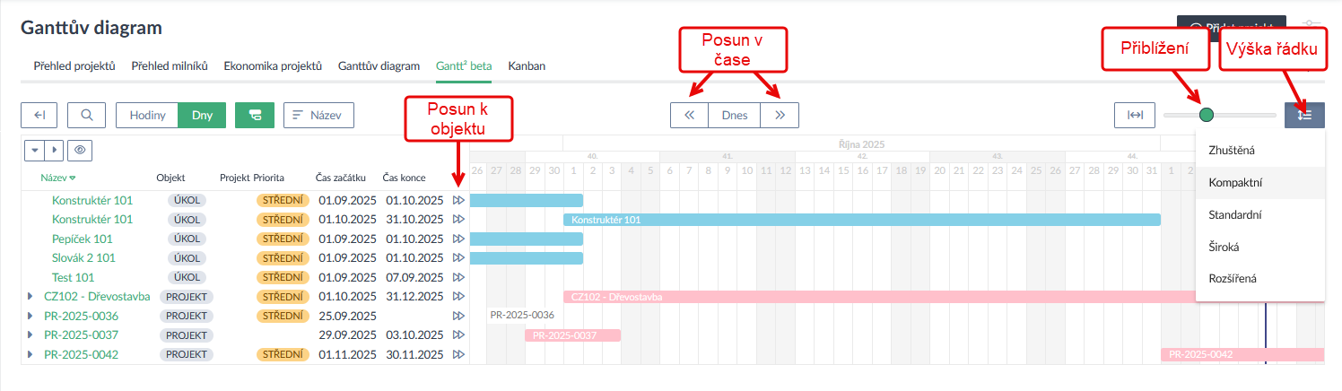 Nová Ganttova diagramu je v "beta" verzi a nadále na optimalizaci a vylepšeních pracujeme.