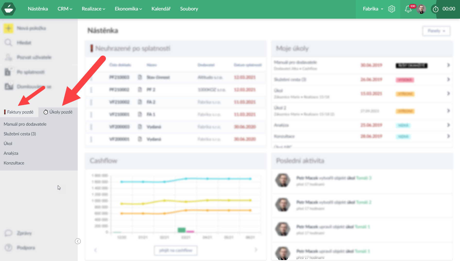 = můžete si tam místo stávajících přehledů pro Firmy a Projekty dát jakýkoliv jiný přehled, který potřebujete mít neustále na očích a ihned ke prokliknutí se do detailu.