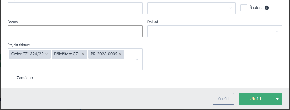 Pokud tyto typy atributů použijete, nadále platí, že uživatel ve výběrovém poli vidí pouze takové objekty (projekty, ůkoly, firmy, kontakty), které s ohledem na přístupová práva vidět smí.
