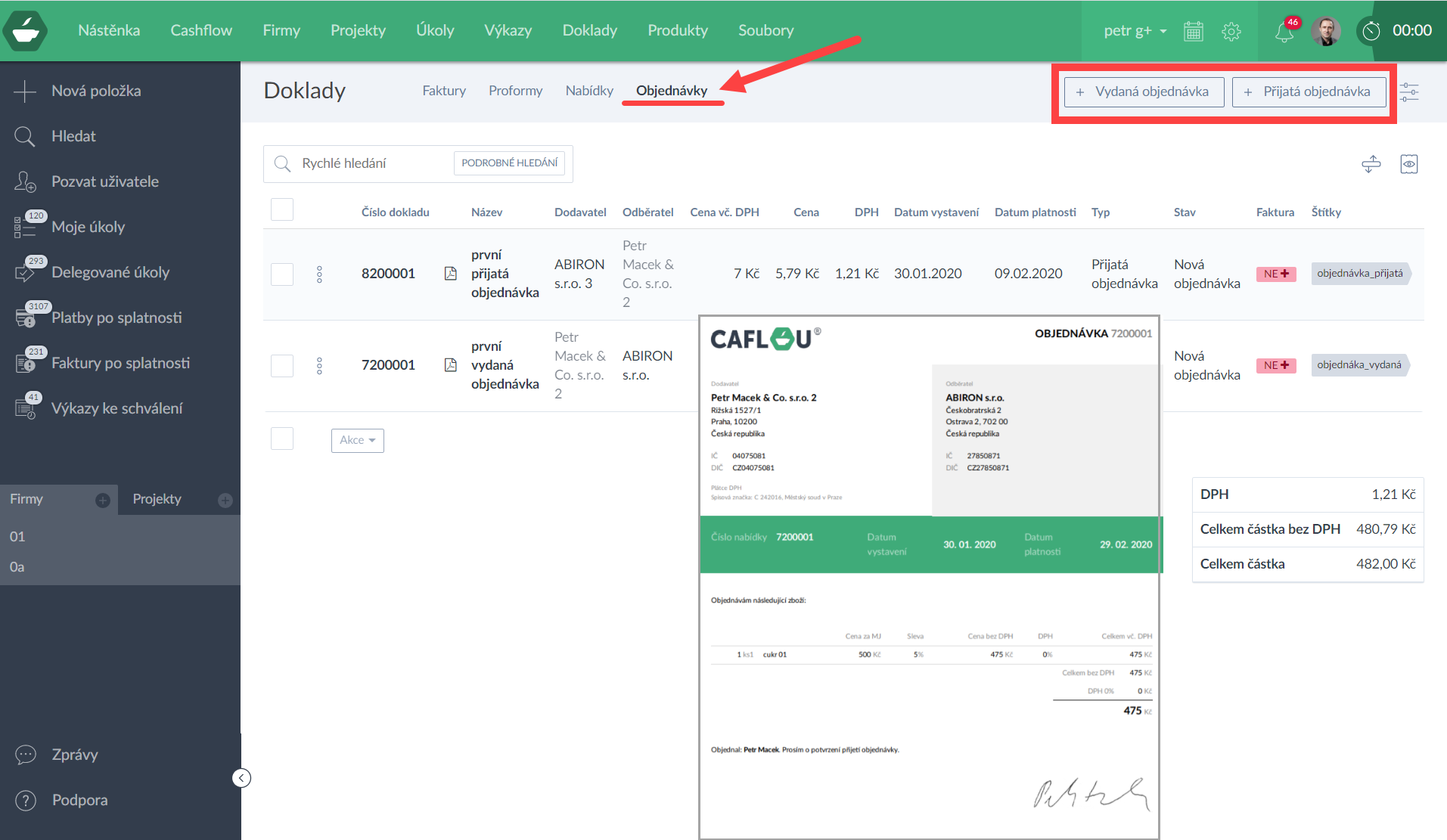 V CAFLOU nyní máme zbrusu nové objednávky - vystavujte vlastní objednávky, posílejte je přímo z CAFLOU e-mailem nebo evidujte objednávky přijaté od odběratelů.