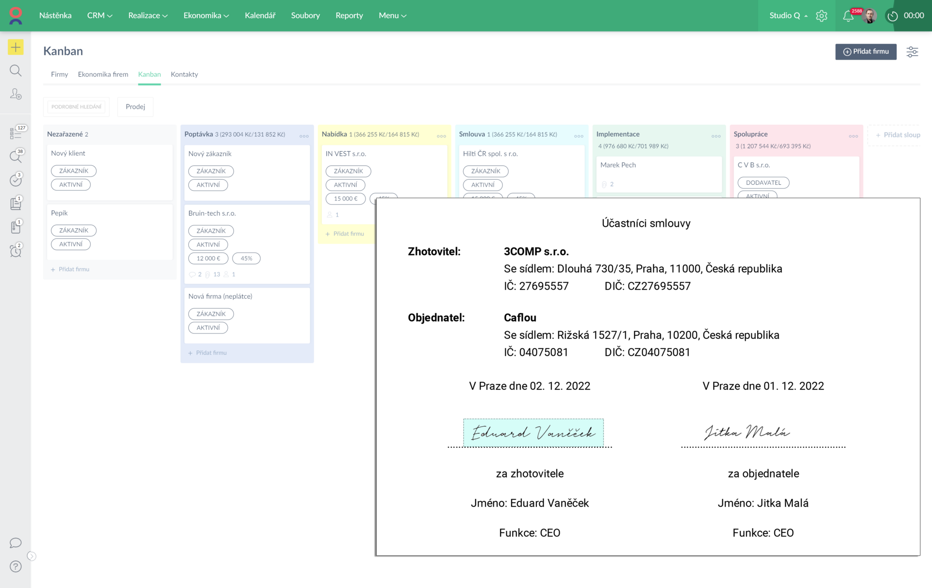 4. Jakmile klient dokument elektronicky podepíše, automaticky pro zakázku vytvoříte projekt s úkoly.