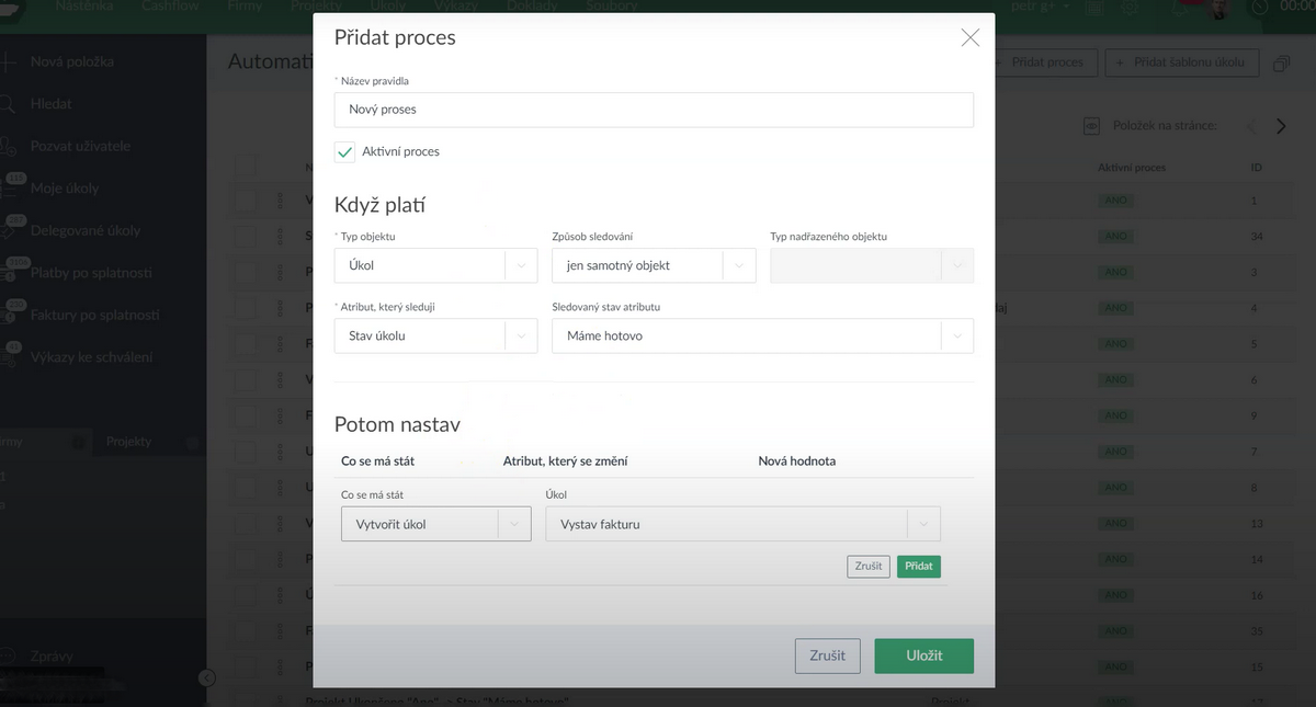 - Automatizace návazných úkolů. Když klient schválí nabídku nebo podepíše smlouvu, můžete na to navázat další akce – třeba vytvoření projektu, vystavení zálohové faktury nebo přidání úkolu pro tým.