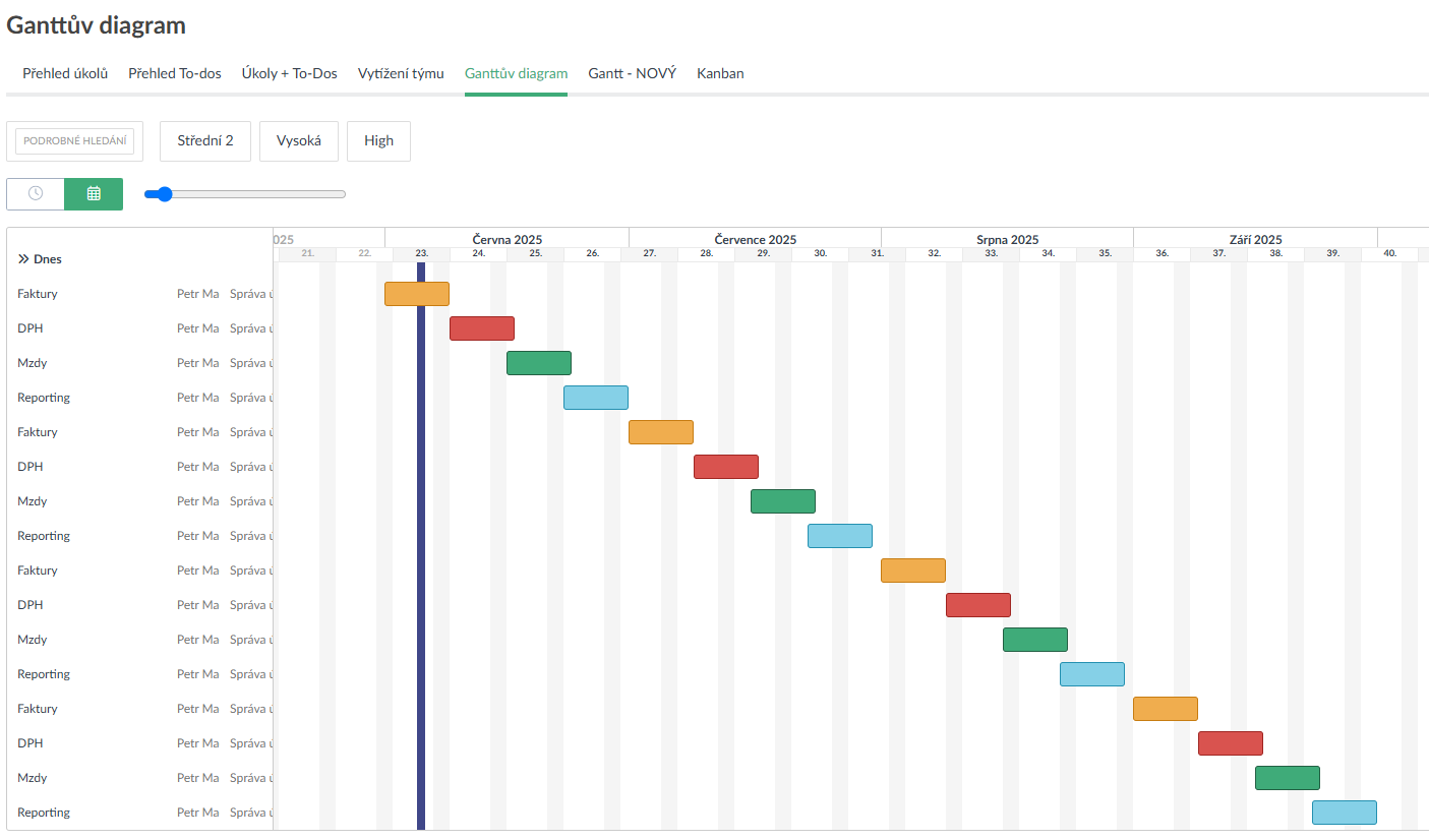 - Předdefinované typy projektů. Pro opakující se projekty si vytvořte šablony, které obsahují typické úkoly, milníky i termíny. Když přijde nová zakázka podobného typu, nemusíte strukturu vytvářet znovu, ale stačí použít šablonu a upravit detaily. Šablony navíc pomáhají udržovat konzistentní postupy napříč týmem.