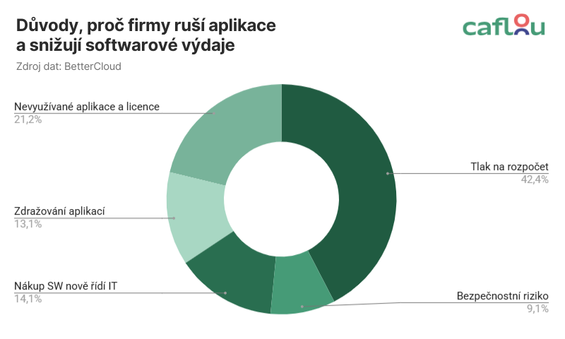 Důvodem růstu je jak zdražování, tak nekontrolované hromadění aplikací. Rozsáhlá studie The Cost of Complexity ukázala, že firmy vyplýtvají zhruba 20 % svých rozpočtů na software (1 z každých 5 dolarů) na duplicitní nástroje, nevyužité licence nebo systémy, které jsou pro lidi příliš složité.