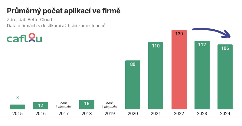 Do roku 2022 firmy bezhlavě hromadily software a vyšplhaly se až na průměrných 130 aplikací. Poslední dva roky přinesly vystřízlivění.