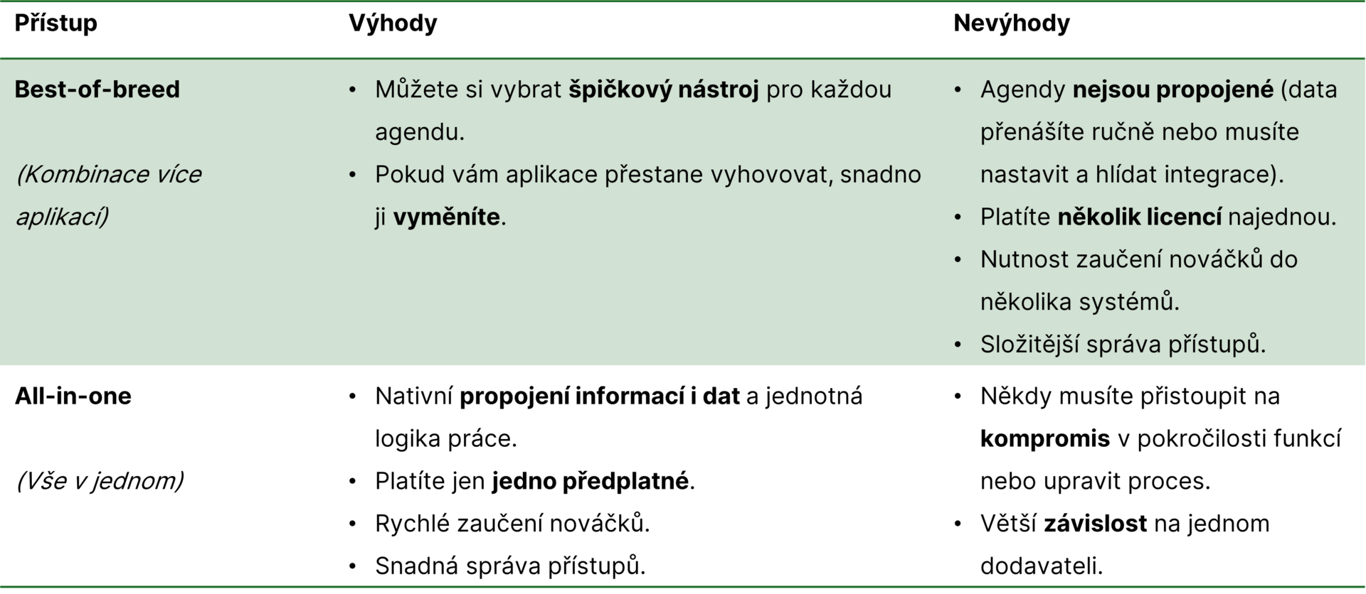 Srovnání přístupů All-in-one × Best-of-breed