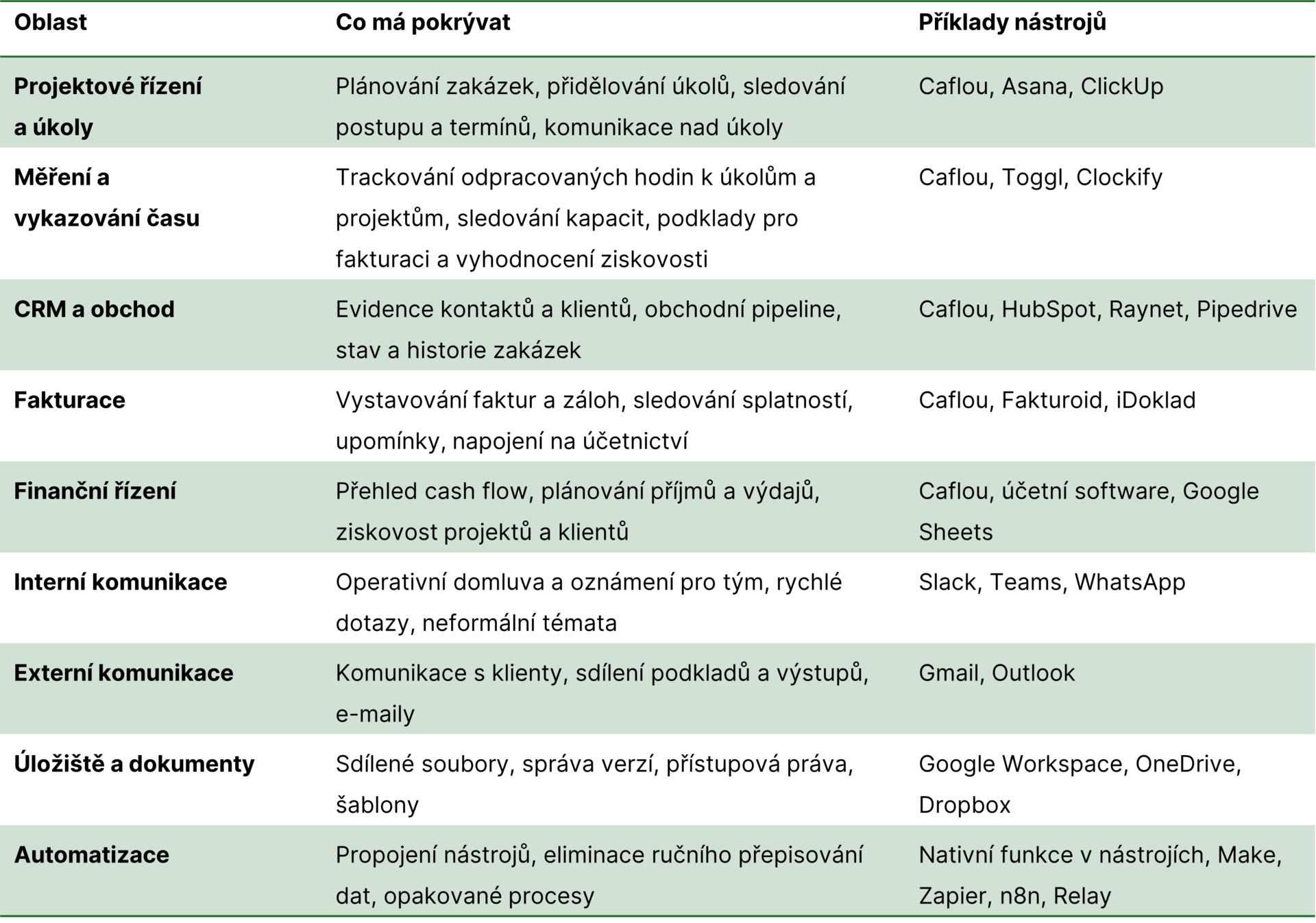 Ne všechny agentury potřebují pokrýt každou kategorii stejně sofistikovaně, záleží na velikosti, způsobu práce a obchodním modelu. Ale každá oblast by měla mít vědomé řešení, i kdyby šlo o „zatím to máme takhle a víme proč“.