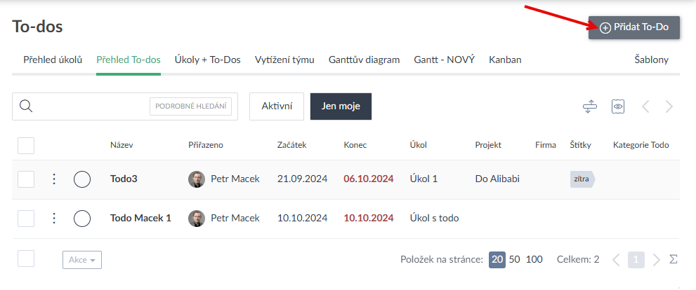 - Vytvořit to-do je nově možno i v přehledu To-dos (Ukázka zde >).