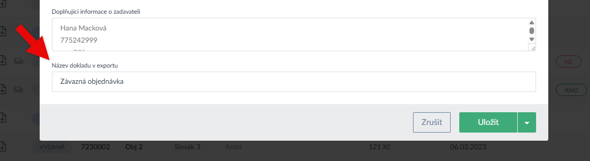 - U vydaných faktur, proforem a objednávek lze nyní zvolit, jak se na výsledném PDF má doklad jměnovat (např. místo "Objednávka" můžete doklad nazvat "Závazná objednávka" (Ukázka zde > a zde >). Doposud toto bylo dostupné jen u nabídek a dodacích listů.