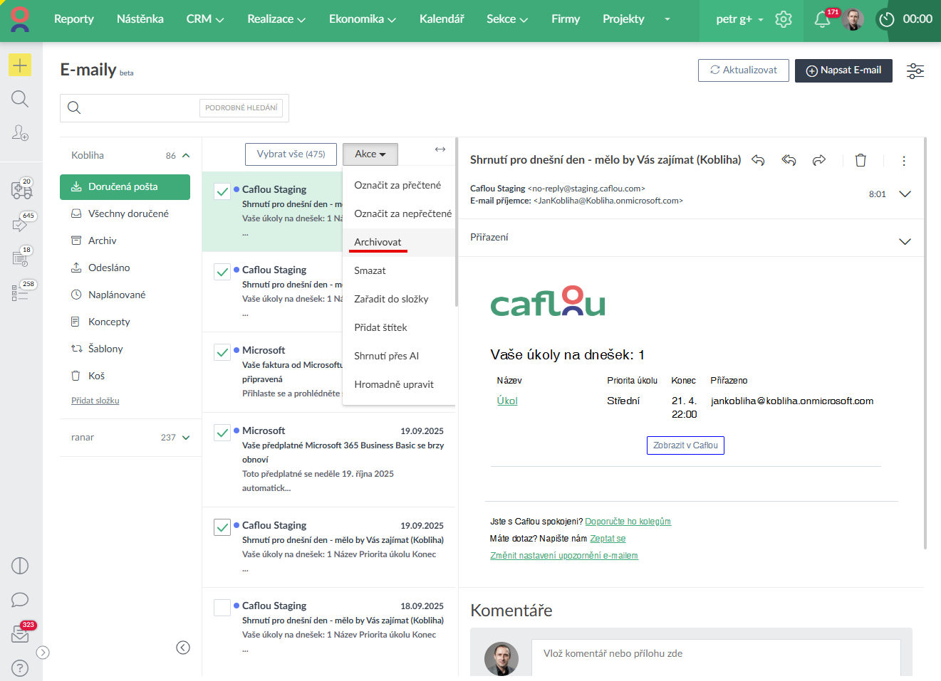 - V inboxu nově přibyla možnost hromadně archivovat emaily (Ukázka zde >).