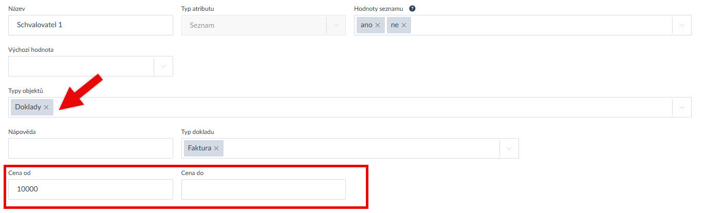 - V nastavení vlastních atributů pro Doklady lze nastavit rozsah částek (včetně DPH), při kterých se vlastní atribut zobrazí, což je praktické např. pro schvalování dokladů (Ukázka zde >).