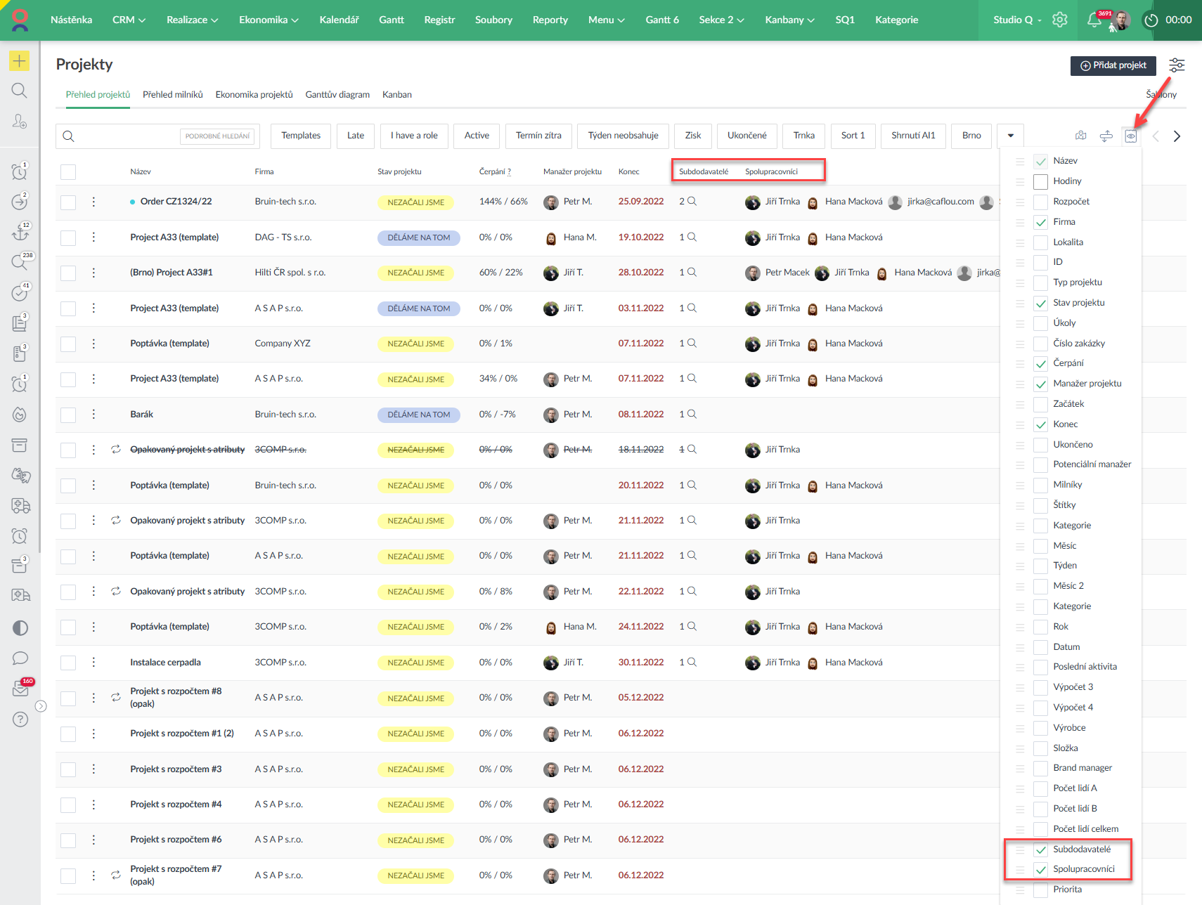 - V přehledech firem, úkolů a projektech lze nyní zobrazit Spolupracující případně Subdodavatele (Ukázka zde >).