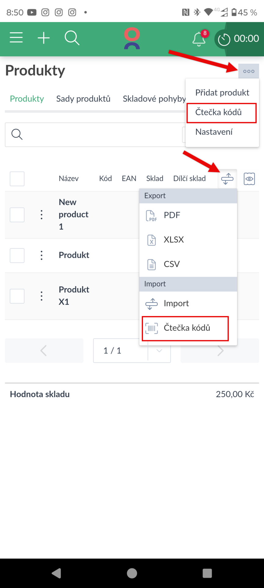 - 🔎 Nová čtečka čárových kódů a QR kódů vám na mobilu či tabletu umožní snadněji naskladnit a vyskladnit položky nebo ze skladových položek snáze vytvořit doklady (Ukázka zde >).