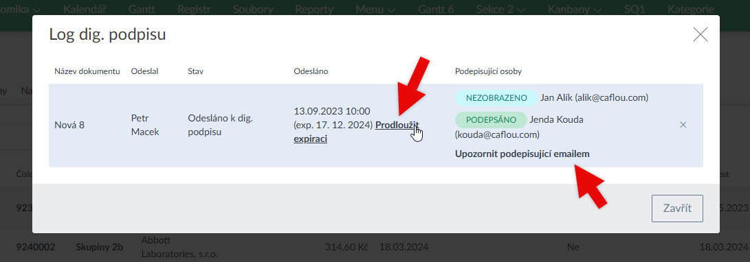 - U digitálních podpisů lze prodloužit platnost dokladů odeslaných k podpisu nebo poslat upomínku těm, co doklad ještě nepodepsali (Ukázka zde >).