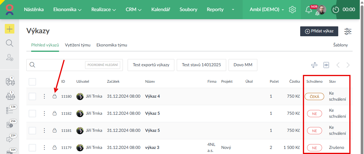 - Uživatel, který má právo zamykat a odemykat výkazy, může nově změnit u zamčeného výkazu Stav a Schváleno i v přehledu Výkazů přes tzv. inline editaci (a nemusí hodnoty měnit přes formulář) (Ukázka zde >).