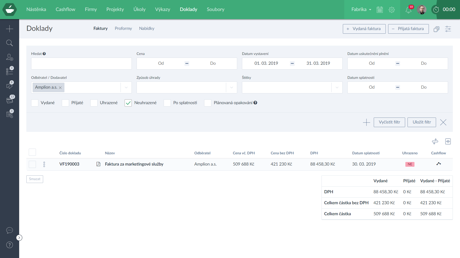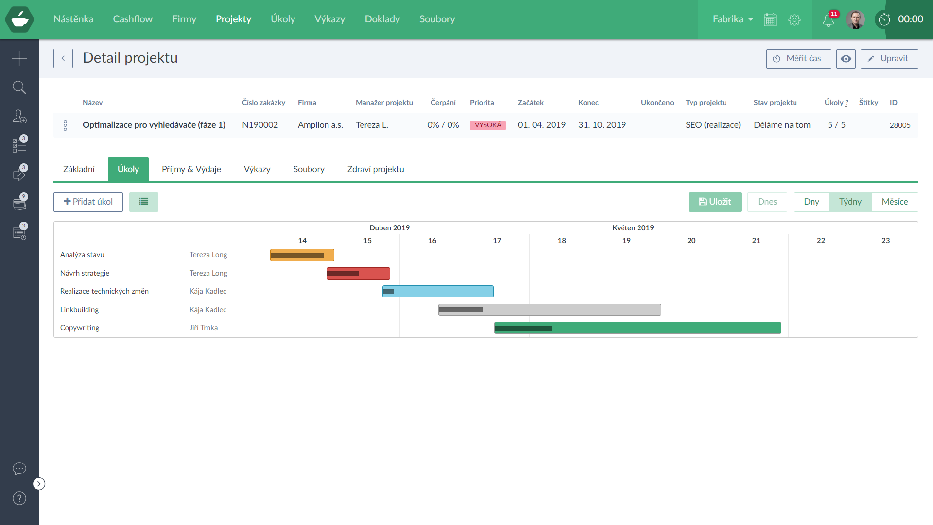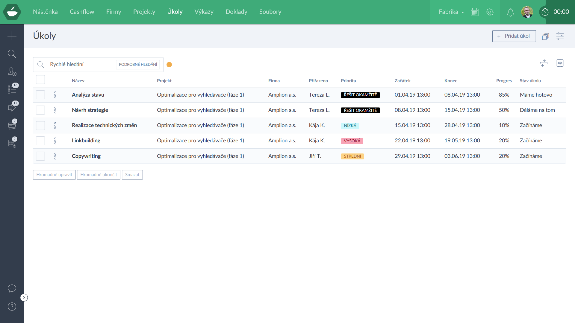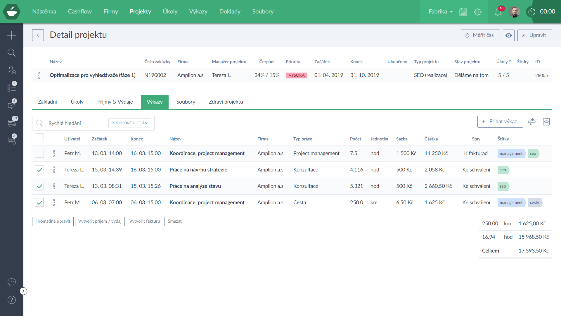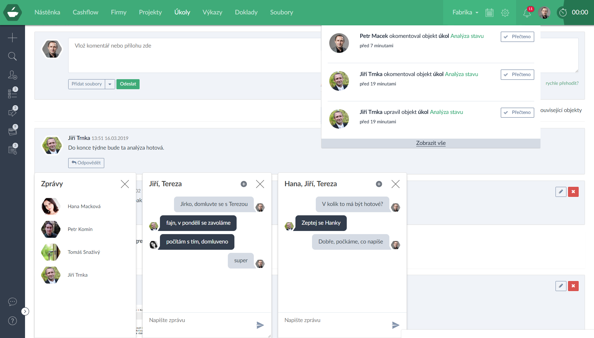 Vše podstatné máte na očích. Po ruce je vždy přehled Vašich klientů nebo dodavatelů. Pod každou firmou máte kompletní přehled o jejich aktivitách, ať už jde o kontakty, komunikaci, příjmy a výdaje, zakázky nebo faktury, ale také třeba dokumenty.