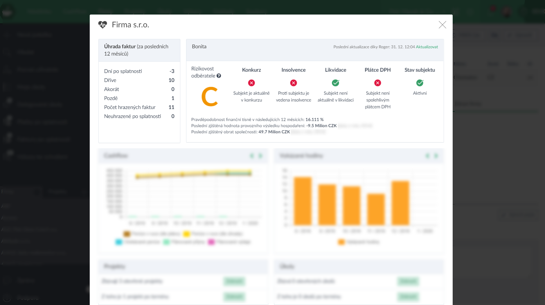 Sledovat můžete také bonitu a platební morálku obchodních partnerů.