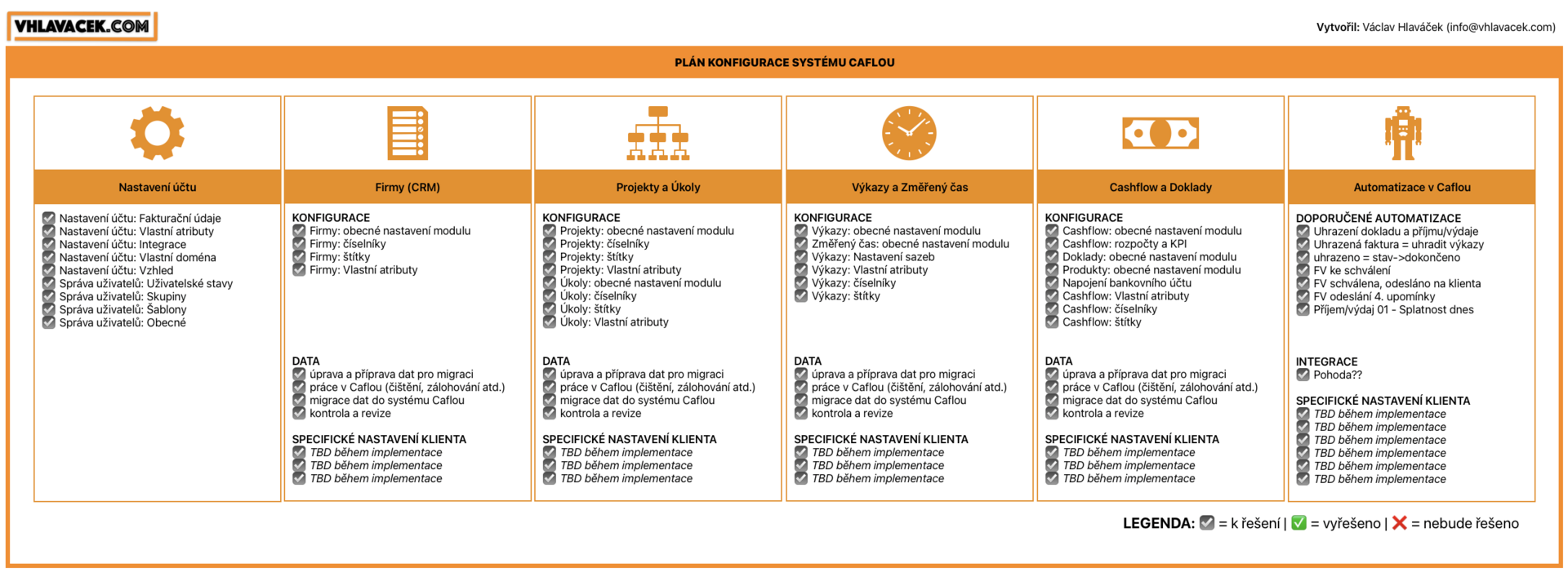 - Analyzuji a vymýšlím procesy ve vaší firmě a navrhuji řešení procesů v Caflou.