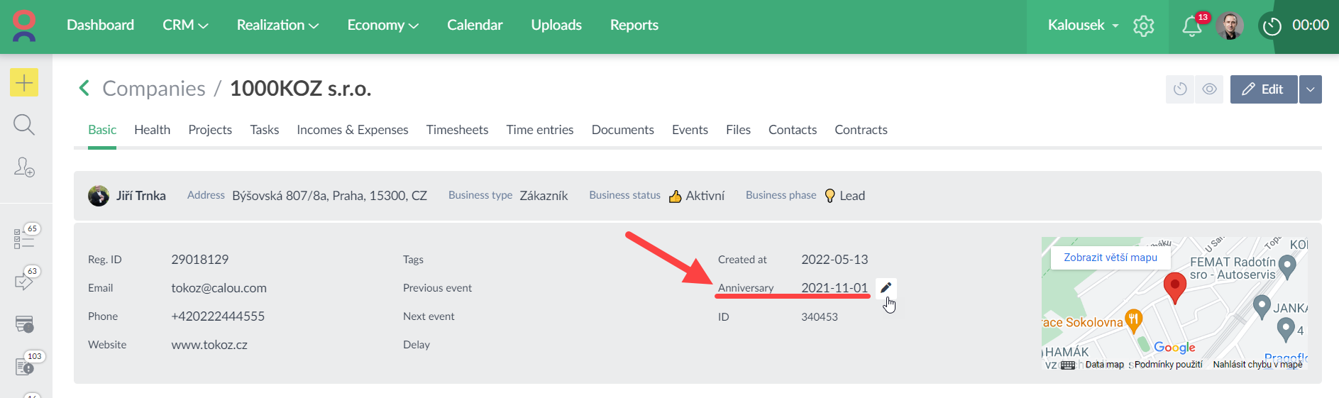 💡 Tip 2: Custom attributes (for company or project) can be inserted into contracts as variables in the contract text (header, body, footer) in the format {company_custom_column_XYZ} or {project_custom_column_XYZ}. You can get the code of the custom attribute (in the form "custom_column_XYZ") via API or by hovering over the name of the custom attribute in the "Custom attributes" section. For a contract, you then specify whether the value is retrieved from the company on the contract or from the project.