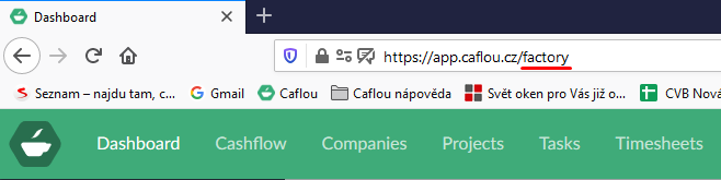 It means for the account "Factory" is the www address of the account in Caflou app.caflou.cz/factory (or app.caflou.com/factory) and the e-mail that you will use for extraction is factory@extract.caflou.com