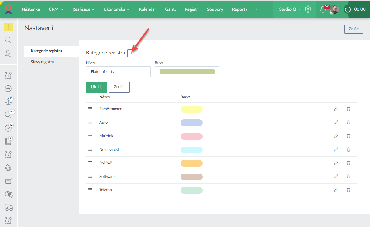 V Nastavení registru si lze přidat vlastní kategorie: