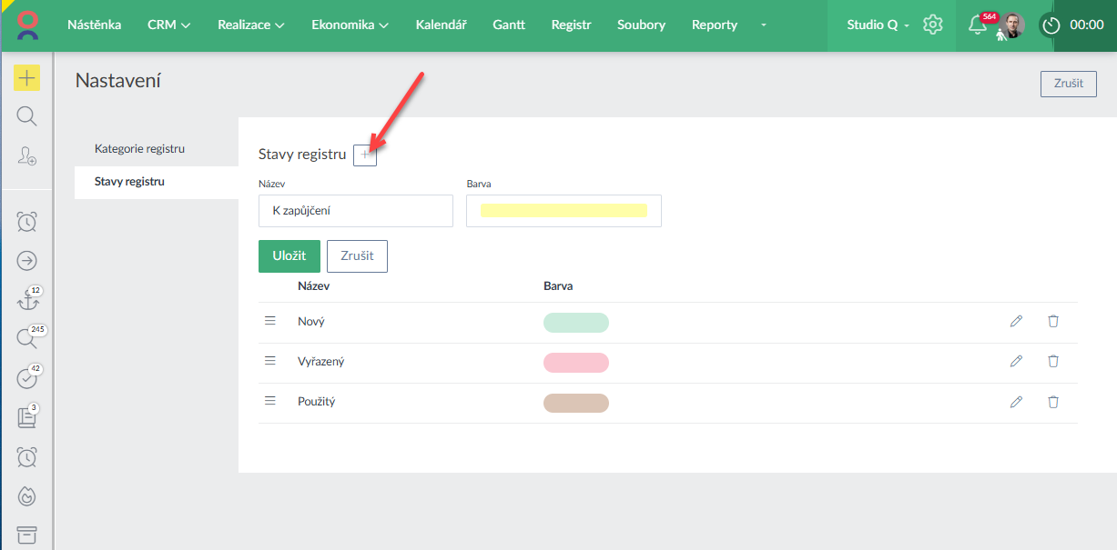 Dále si můžete určit vlastní stavy, které lze navázat na konkrétní kategorie (tj. např. u kategorie "auto" mohou být jiné stavy než u kategorie "zaměstnanec"):