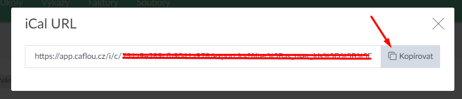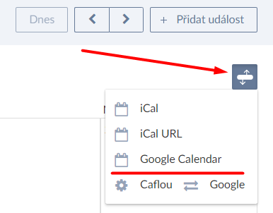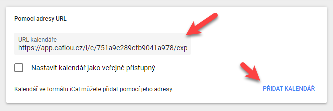 - pomocí iCal URL (tuto možnost lze použít i pro integraci s jinými kalendáři, než je Google kalendář, pokud tyto podporují import pomocí URL, tato integrace je jednostranná = Caflou > externí kalendář)