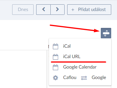 Jděte do možnosti "Export" a vyberte volbu "iCal URL":