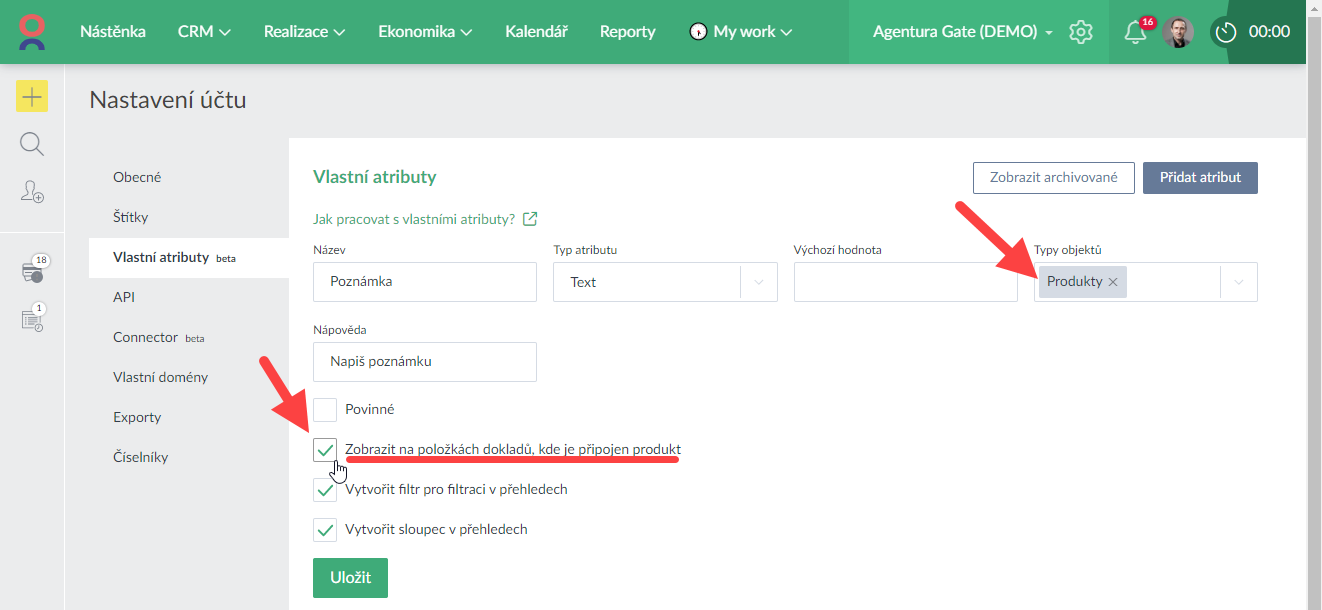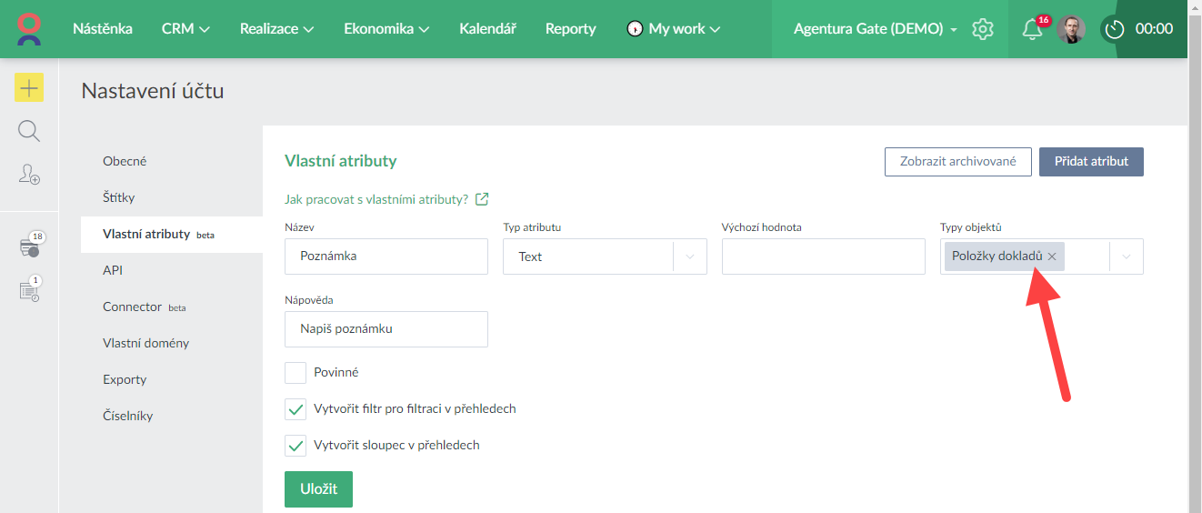 Jak pracovat s vlastními atributy, se dozvíte zde: Jak pracovat s vlastními atributy 📖