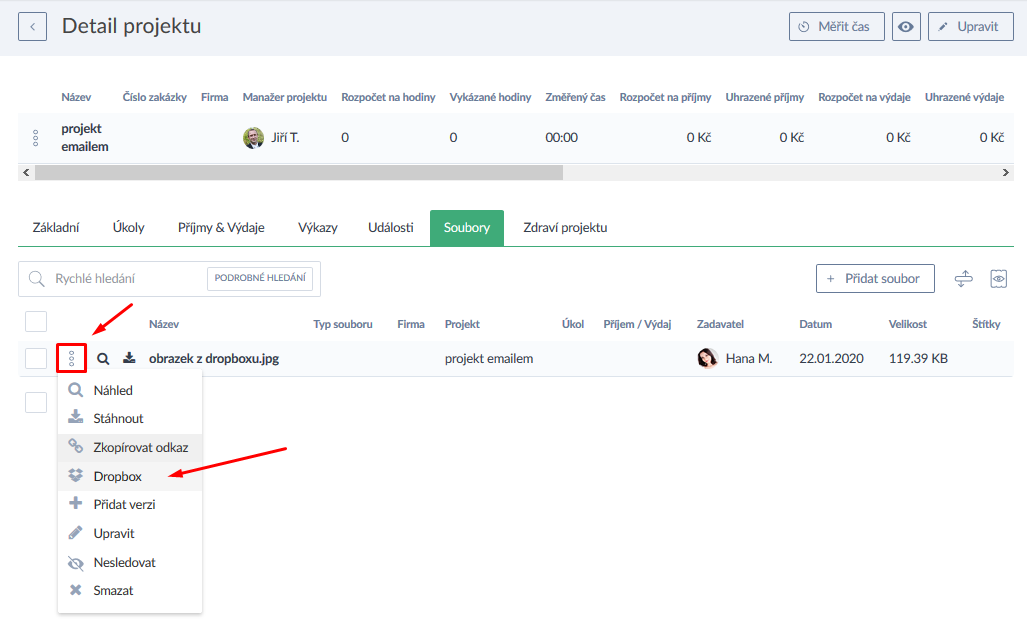 Následně vyberete soubor(y), které chcete do Caflou nahrát a je to. Soubory se uloží do Caflou a lze je standardně zobrazit, stáhnout atd., lze se také prokliknout k původnímu souboru (např. na Google Drive):