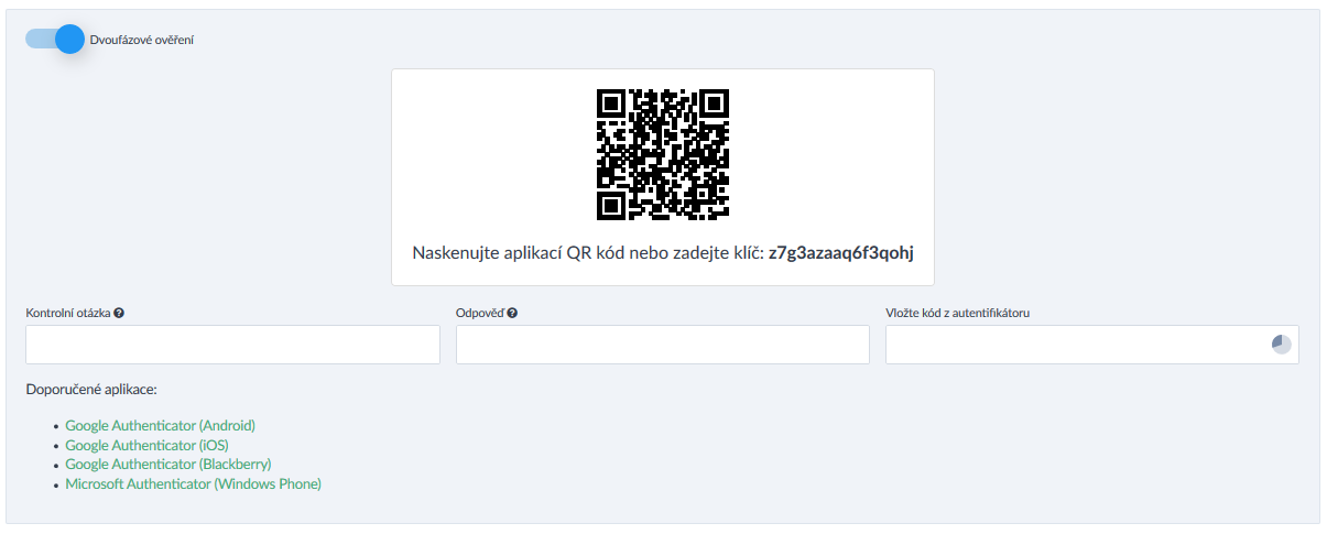 ☝️ Zde pozor, do Vašeho mobilu si nejprve musíte nainstalovat aplikaci, která jednorázový kód generuje, např. Google Authenticator, zde odkazy na stažení:
