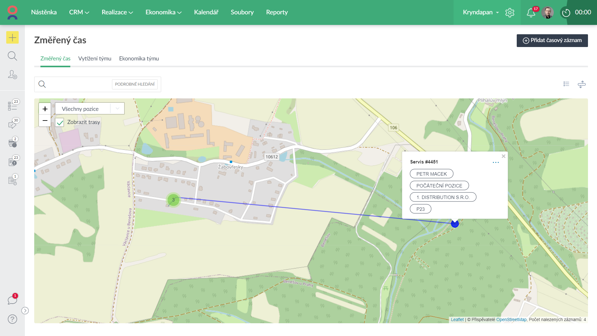 Z přehledu pro "Změřený čas" si kliknutím na ikonu mapy můžete zobrazit přehled časových záznamů na mapě: