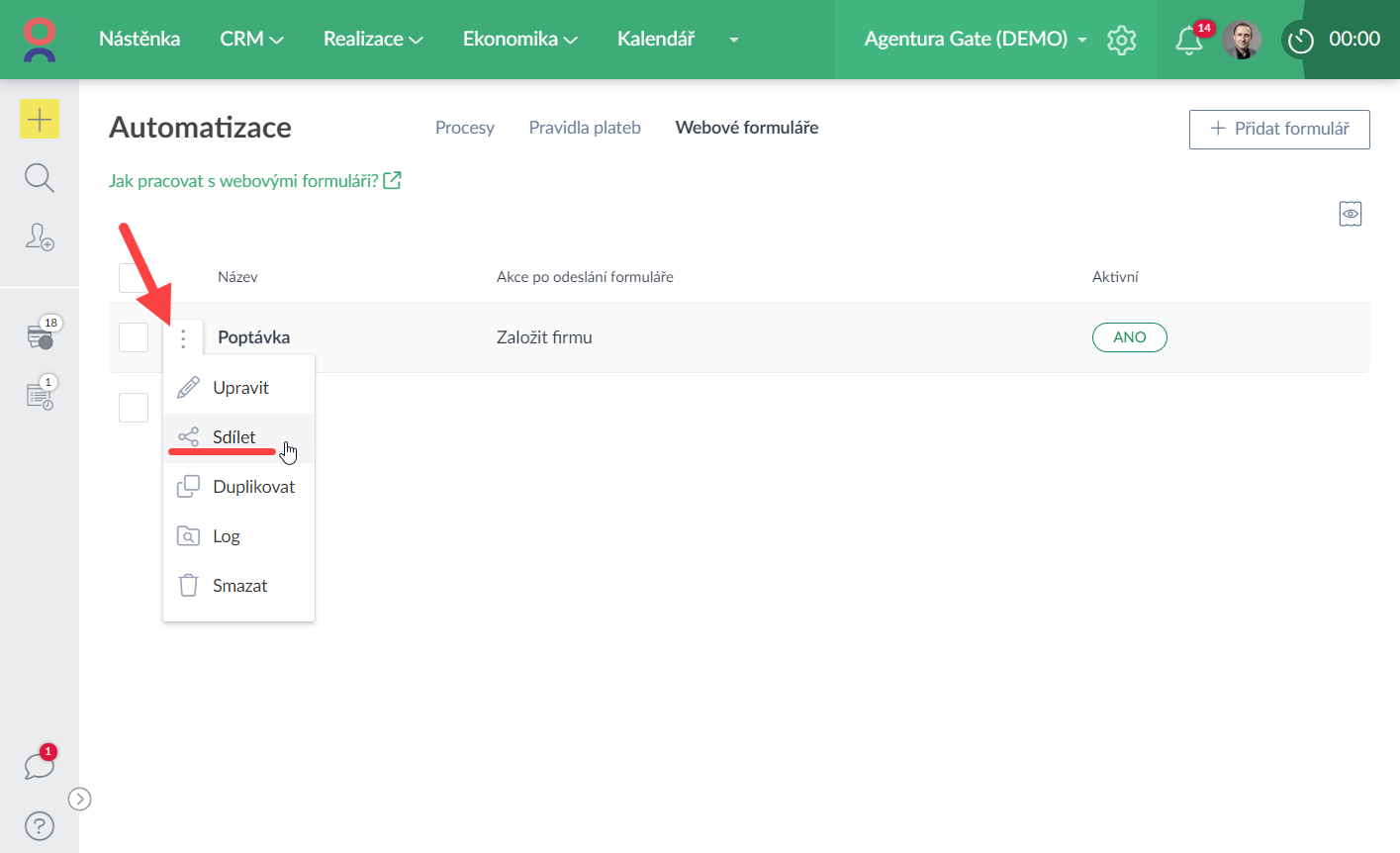 Jakmile formulář uložíte a je ve stavu "Aktivní", můžete ho sdílet či publikovat. Máte 2 možnosti: