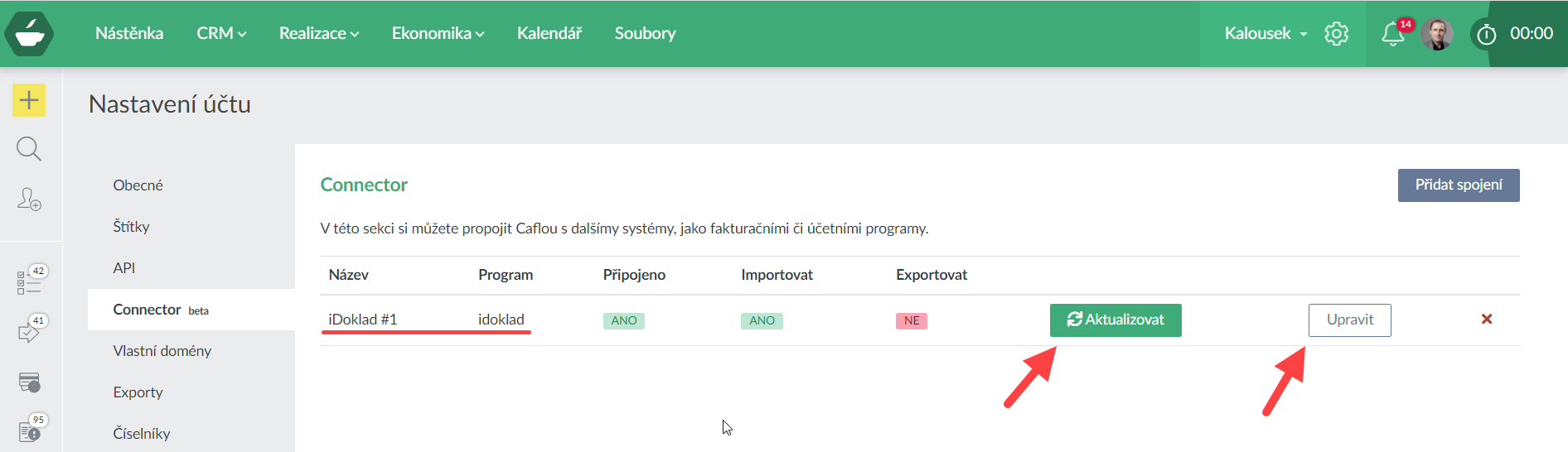 Propojení nastavíte v Nastavení účtu, v sekci Connector: