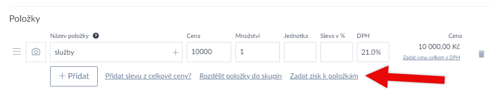 Následně při vytváření nabídky u položek zvolíte akci "Zadat zisk k položkám":