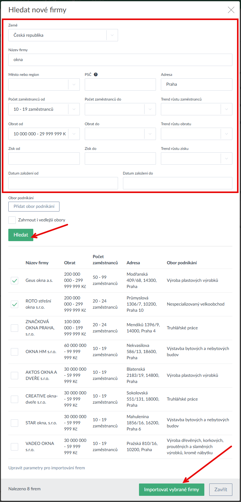 Můžete si tak vyhledat potenciální zákazníky nebo dodavatele dle požadovaných kritérií, např.